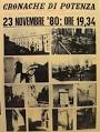 na. Dà notizie di sé, vuole notizie degli altri. TP1….TELEPRETORIA1. Per noi questo è stato il TERREMOTO. È quasi giorno. Per fortuna. Mi alzo. Ora sentiro’ le altre notizie dalla tv. Almeno finisce qui il rumore del buio.!La foto di copertina è stata gentilmente concessa dal collega dGiuseppe Fiorellino che, come tanti altri giornalisti di oggi, ha partecipato all’avventura di Tpi, e riprende la tenda allestita il giorno 24 novembre dell’80 a Montereale per continuare le trasmissioni televisive e fare da collegamento con i servizi di emergenza. a fianco Andrea Sansone premiato a Saint Vincent per il ruolo che la prima televisione potentina ha saputo tenere in quelle circostanze. Nella foto di copertina si intravedono Giuseppe Golluscio e il compianto, indimenticato Ciccio Possidente, cineoperatore di altissima professionalità