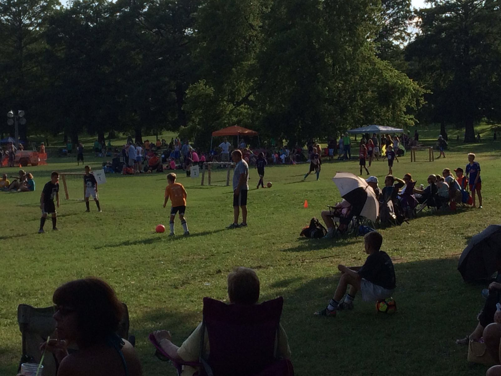 Ai bordi dei campetti, i genitori si sono portati sedie pieghevoli e cooler con generi di conforto in ghiaccio. Si mangia, si beve, si ride, si esulta per i gol, si incoraggiano i piccoli Pirlo (a proposito, qualcuno ha magliette della nazionale italiana, e sono proprio quelle col nome Pirlo scritto dietro). Tutto molto sereno, tranquillo, in un vociare di bambini che riscalda il cuore.