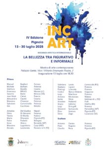 A prescindere dalle doti e dalla capacità tecnica e realizzativa. Le opere di Incart25 saranno esposte fino al 30 luglio nelle sale del seicentesco palazzo Gaeta, nella centrale piazza Risorgimento di Pignola, dalle 10 alle 13 e dalle 17 alle 20 di tutti i giorni. Per ogni quadro e scultura degli artisti partecipanti elencati nella locandina-invito, a corredo delle opere, si potranno leggere titolo, tecnica e datazione. Per gli approfondimenti dei singoli profili e biografie basta inquadrare col cellulare l’apposito qr code. Oppure cercare nel web quanto già pubblicato su autori e manifestazione.