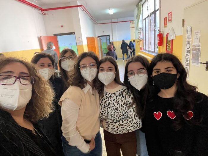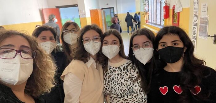 In foto le allieve finaliste, le docenti Scala e Imperiale e il dirigente scolastico Caterina Policaro