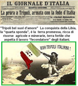 “A Tripoli nell’interesse di tutti”, è l’invocazione categorica ed esultante dell’imperialista Giovanni Giolitti, al Teatro Regio di Torino, dopo il suo discorso sulla necessità d’invadere la Libia. Siamo al 7 ottobre 1911. Delusi i socialisti de “La Squilla Lucana” che chiedono di ridurre le spese militari[1]. Il clima primaverile di Potenza, ancora frescolino, non basta ad attenuare i calori e l’elettrizzante idea di ottenere un’altra colonia dopo l’Eritrea. La conquista di Tripoli è ormai di dominio pubblico, nelle convinte intenzioni e nelle carte del ministro Giolitti. È ormai nella storia.